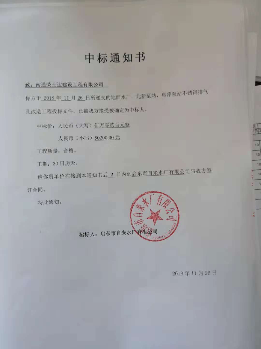 中标通知书