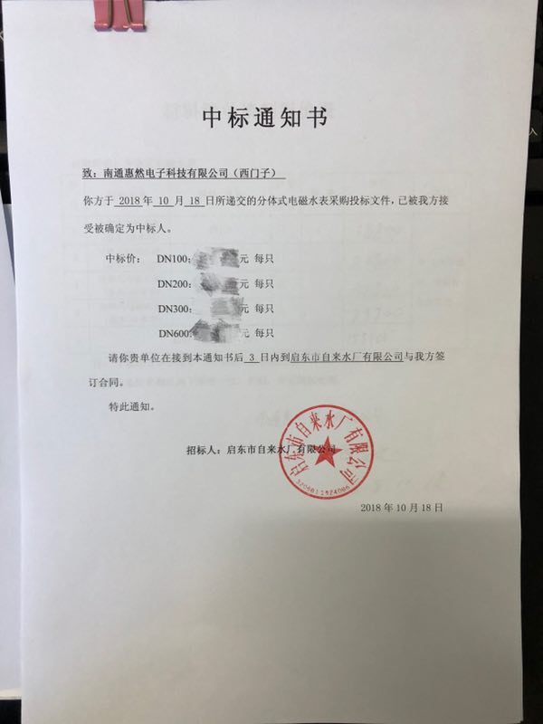 中标通知书