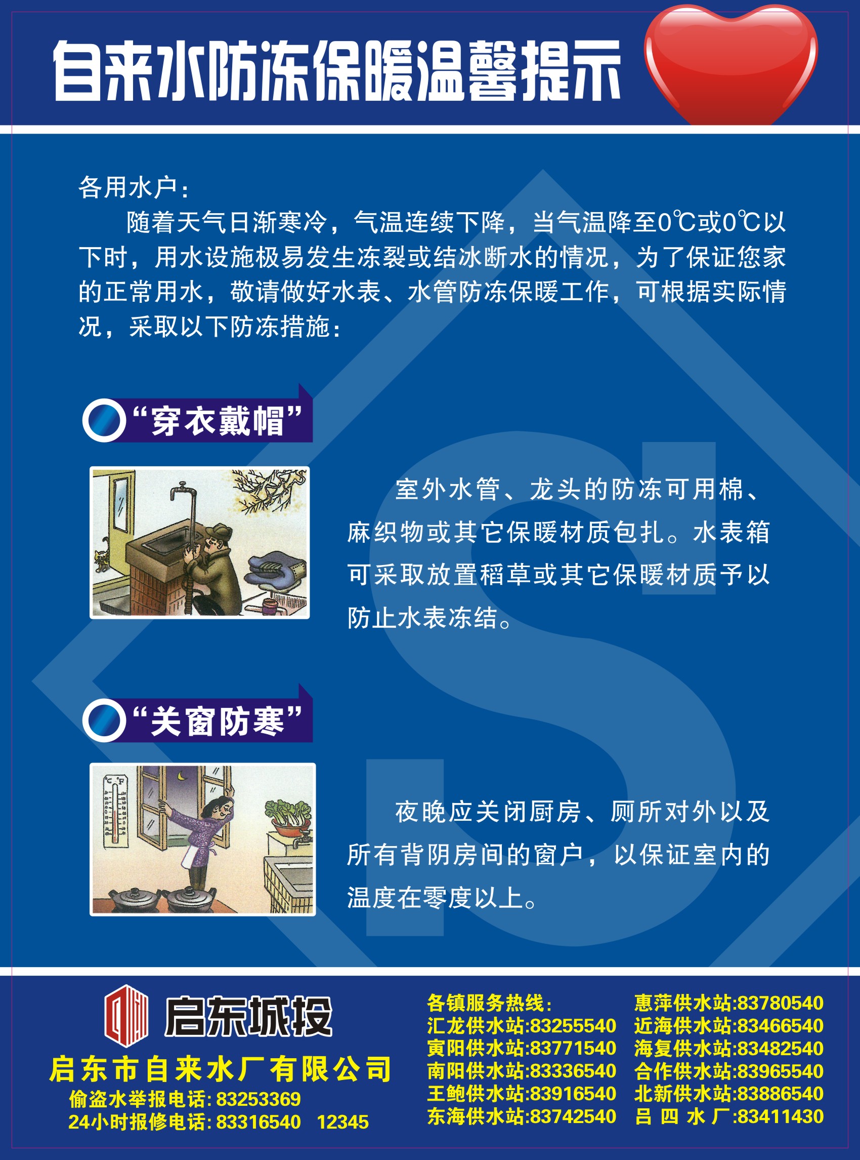启东市自来水厂有限公司2024年度防冻宣传单印制项目询价公告